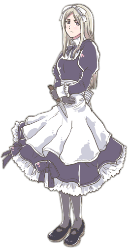 Jej mundur jest ciemnozielony, nosi do niego długą spódnicę tego samego koloru. Jej kokarda we włosach jest wtedy czarna.