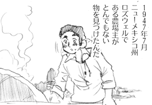 Ilustracja Williama odkrywającego UFO na swoim podwórku