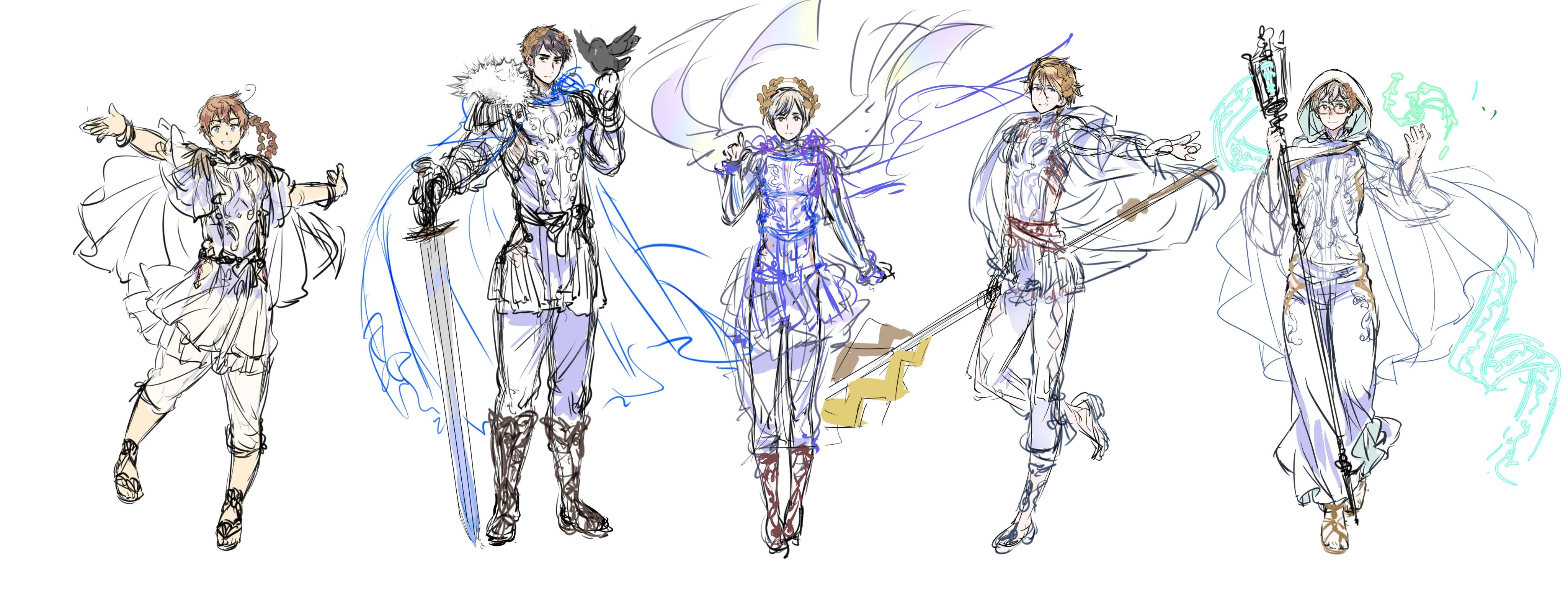 Szkic pięciu cesarzy z Twittera Himaruyi. Od lewej: Neron, Tyberiusz, Augustus, Kaligula i Klaudiusz.