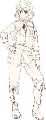 Высокая девушка с короткими и вьющимися светлыми волосами, убранными лентой для волос (обычно зелёной или красной, но иногда черной) и зелёными глазами. На арте, нарисованном Хидеказ Химаруей, она, как и большинство персонажей, одета в военную форму, но на других артах одежда иная. На ранних рисунках она носит перчатки, на обуви много деталей, на галстуке—черный узор. В изменённом варианте её обувь упрощена (отсутствуют каблуки и шнурки), а галстук сменился на ленту. Однако в более позднем чиби-варианте вместо ленты вновь появился галстук (правда, с другим дизайном), а брюки превратились в галифе. Цвет формы оставался неизвестным до тех пор, пока не появилась иллюстрация в Comic Birz (цвет хаки).