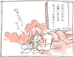 Пикардия пришёл к Франции посреди ночи после получения звонка с просьбой о помощи, хотя, как было показано, ему это не очень хотелось делать. Когда Франция затягивает объяснение, Пикардия не выдерживает и высказывает все свои мысли по этому поводу. Однако, когда Франция набрасывается на него, он смиренно отступает. Франция скидывает на него все обязанности Первого Апреля и надевает на него неко-ушки. В скетче, размещённом на Bamboo Thicket, Пикардия находится рядом с радостным Францией.