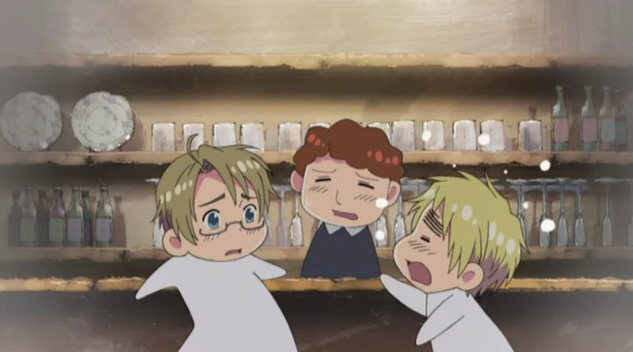 Следующий план Англии показывают в заголовке: «Напоить Америку и вытащить из него информацию». Позже Англия и Америка садятся в за стойку бара, и Америка выражает удивление, так как Англия не приглашает его пить очень давно. Англия отвечает, что он думал, что это интересно делать время от времени. Однако спустя несколько часов Англия оказывается сильно опьянённый и запутанный, в то время как Америка продолжает оставаться трезвым. Бармен спрашивает, в порядке он, но Америка уверяет бармена, что Артур всегда ведёт так себя, когда он пьяный. Пьяный и возмущённый Англия встаёт с места и заявляет, чего это Альфред говорит так уверенно, когда это он (Англия) является тем, кто воспитал его и сделал из него человека.