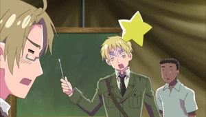 Случайный прохожий - Нуруяма Нурио (23 года) заходит в немецкое кафе. На него с порога тут-же начинает кричать Германия, говоря, что у него нет силы воли, чтобы быть солдатом.