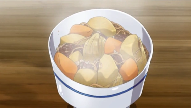 Наконец, когда наступает ночь, он успевает закончить рагу и представляет его своему боссу. В сноске говорится, что создание Японии стало известно как "Никудзяги". Босс Японии наслаждается вкусом нового открытия, хотя сердитый Англия с отвращением выбрасывает то же самое блюдо.