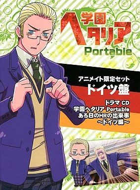 Gakuen Hetalia Portable: That One HR Incident ~Germany version~ (学園ヘタリア Portable ある日のHRの出来事 ~ドイツ編~, Gakuen Hetaria Portable Aruhi no HR no Dekigoto ~Doitsu-hen~, lit. "Academy Hetalia Portable: A Certain Day's HR Incident ~Germany Version~") is a special bonus drama CD that was shipped with copies of the Gakuen Hetalia Portable PSP game ordered through the Animate website.