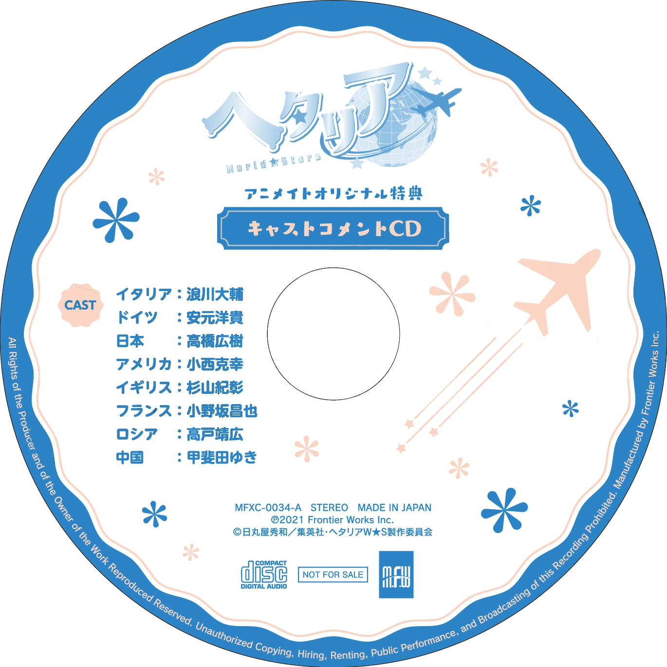 Hetalia: World★Stars Animate Original Benefits Cast Comment CD ヘタリア World★Stars アニメイトオリジナル特典 キャストコメントCD