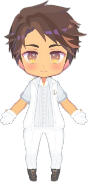 Indonesia has a black/dark-brown long side fringe hair and golden brown eyes. He wears a short-sleeved khaki Indonesian police uniform with a Moon Orchid in his left pocket, dark brown pants, and white gloves.