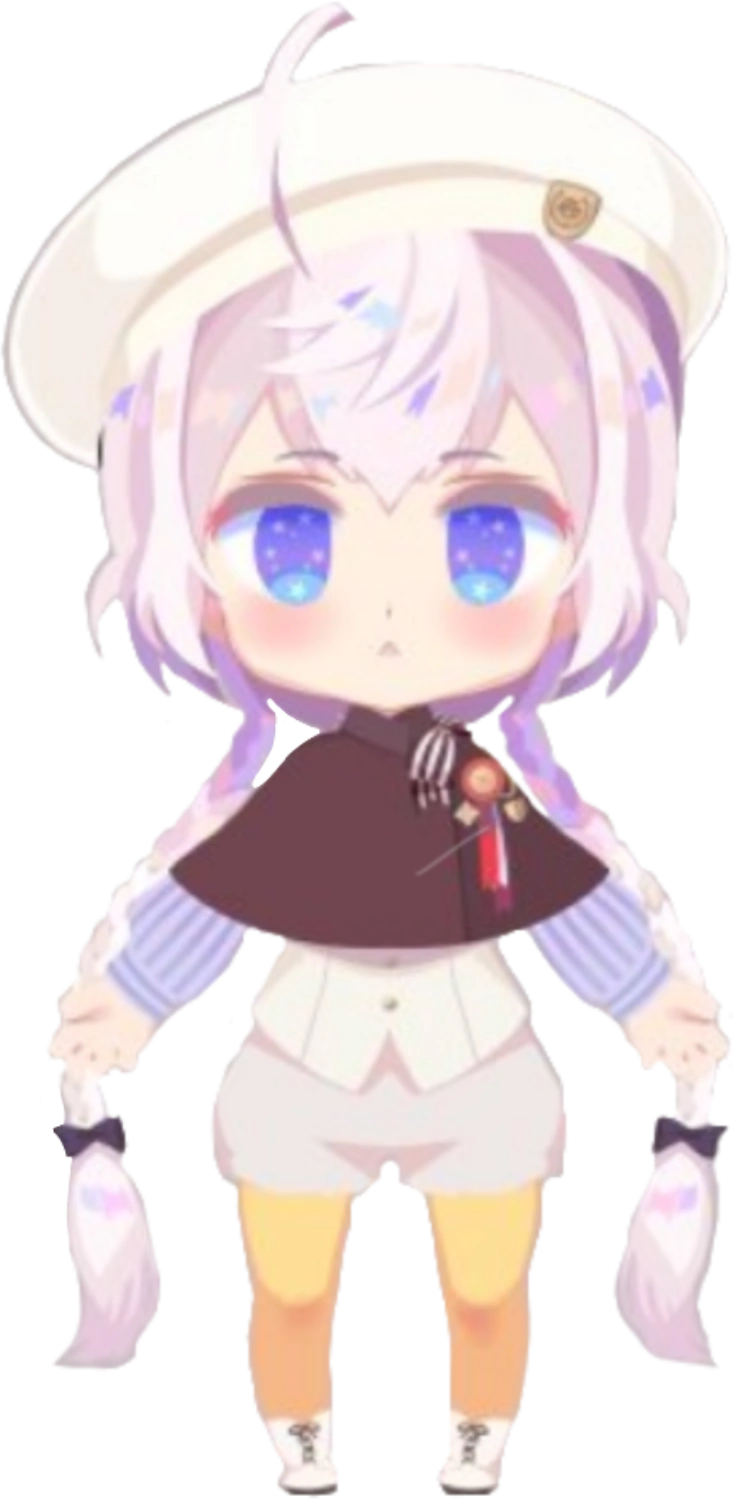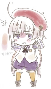 Kugelmugel is a young boy with purple eyes and white hair worn in two long braids with an ahoge. He also has a mole underneath his left eye that is similar to Austria's. He wears a red beret and a white vest with a dress shirt with blue stripes on it. He also wears a small bow, purple shorts, tan leggings and boots. On both his vest and beret is an insignia resembling a coat of arms. He and Ladonia are equal in height to one another, and shorter than Sealand.