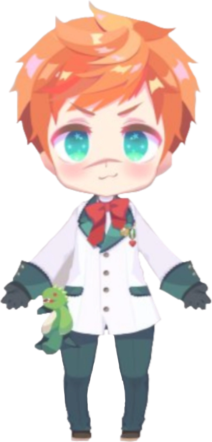 Ladonia appears to be a young boy with ruffled red hair and blue-gray eyes. He has a greenish streak of paint across his face (Appearing more of a tan/red color in the anime), extending from his right cheek to his nose. Ladonia wears dark pants and a white trench coat decorated with grey buttons, frilly lapels and large cuffs, which are gray as well. He has a gold apple pin attached to his lapel, which represents a Ladonian legend about golden apples that grant immortality. His looks make him to be similar as an elementary school's student.