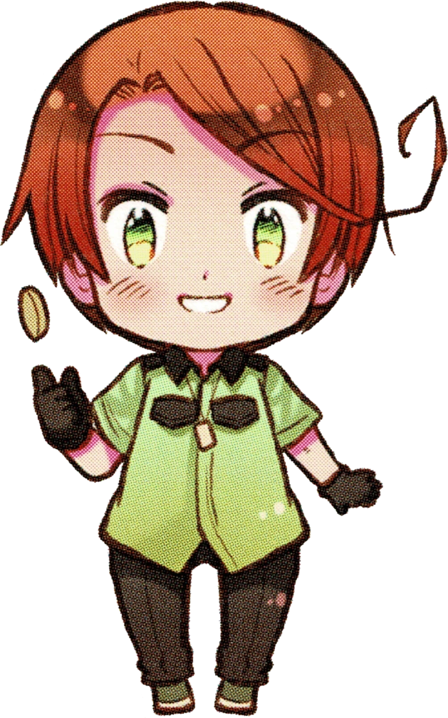 In the anime, he is seen wearing dark pants, a green short sleeved collared shirt, and dark gloves. Similar to Italy, he often has his eyes shut but he does open them more frequently than Italy.