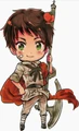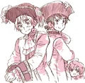 Though he has yet to be shown as a child in the actual strips, other designs for a young Spain appeared in the special edition booklet of Hetalia Axis Powers: volume 2. In the sketches, Spain wears a button-down tunic, a striped blouse and breeches, tights, and loafers with bows on them.