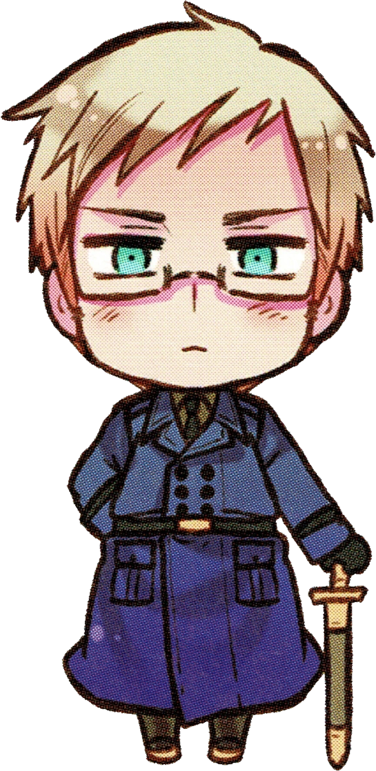 He has a distinctive stare that many other characters perceive as menacing, a facial expression he shares with Holy Roman Empire, Prussia, Germany and Germania (a nod to the fact that they are all tied to Germanic peoples).
