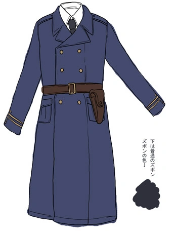 Sweden wears a long, dark blue, double-breasted coat, with either a black or white shirt underneath (shown with both colors in different artworks by Himaruya), and pockets on both sides under the belt. The coat is long enough to reach his tall black boots. He is also sometimes depicted with his matching blue hat. He regularly wears his glasses.