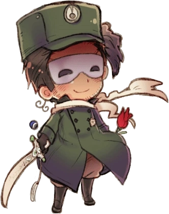 Turkey is rather tall and olive-skinned, with a slight stubble on his chin (much like France). He wears a long green (sometimes tan) coat, brown pants, knee-high boots, a tan scarf, and a red fez hat. His face is usually obscured by a white mask. Like Greece, he has a double haircurl, but it rests down by his neck.